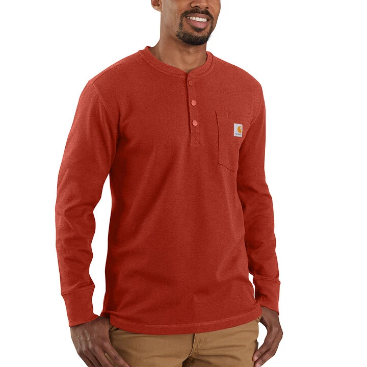 Carhartt® Men’s Big & Tall Henley Pocket versatile Thermal Shirt keeps you warm and comfortable on colder workdays. It’s made with a stretchy cotton-blend fabric and has a chest pocket up front with a built-in pen stall.