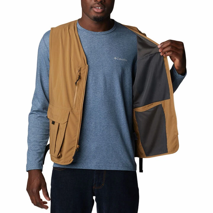 A trusted trail classic now made of Recycled materials and fortified with wicking and sun protection. With a cinchable waist and vents for air flow, this Columbia® Men’s utiltiy vest also has pockets aplenty to store gear. Perfect for a day hike when you don’t need a backpack.
