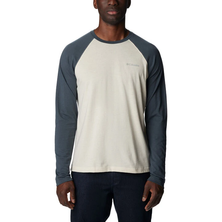 Wick away moisture in Columbia® Men’s Thistletown Hills™ Raglan lightweight, cotton-blend tee that’s built to keep you dry.