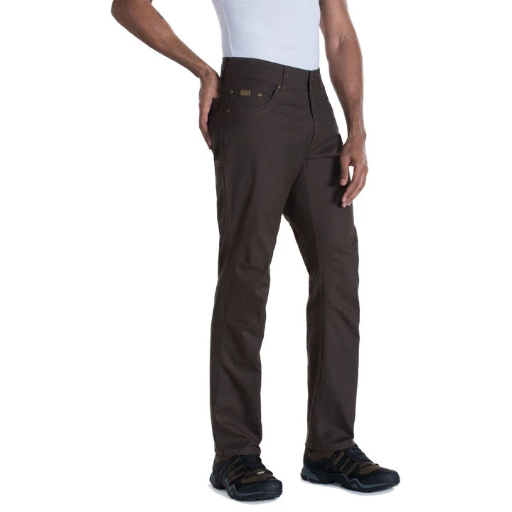 Kuhl® Men’s Kanvus™ Jean features a lightweight woven cotton canvas with a touch of spandex for stretch and durability. The tapered fit tapers from the knee down for a more modern fit. Kuhl’s Born Free™ gusseted crotch and articulated knees allow freedom of movement and provide superior comfort. A stealth pocket keeps your phone hidden and secure.