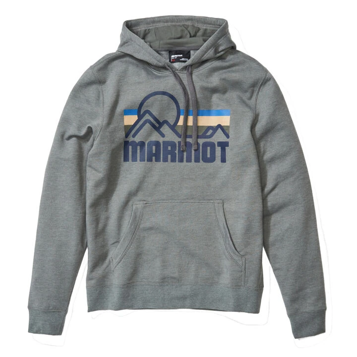 When the sun drops on your next outdoor trip, warm up and relax with Marmot® Men’s Coastal Pullover Hoody. The jersey fleece fabric is garment washed to feel extra soft. Adjustable drawcords at the hood and kangaroo pockets provide extra protection against chilly evenings. The screen printed graphic adds a casual, laid-back vibe.