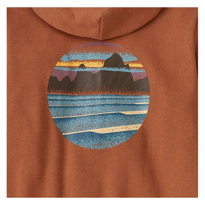 Imagine the Fitz Roy skyline at sunset with stacked sets marching in: Patagonia® Men’s Skyline Stencil graphic is screen-printed on a hoody made from 100% Postconsumer Recycled fabric. By utilizing fabric scraps and recycled bottles, Patagonia® reduces their reliance on virgin raw materials.