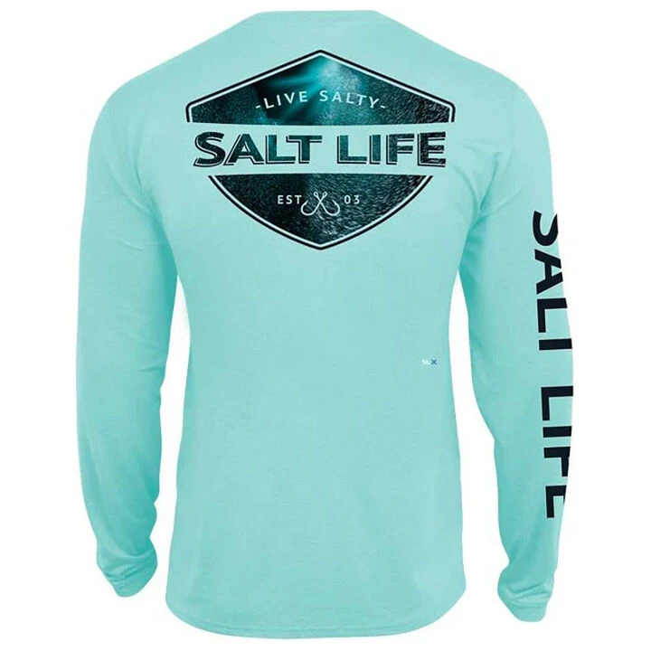 Salt Life® Men’s Deep Sea Light Crew Neck Long-Sleeve Performance tee is a great addition to your wardrobe. Features include front/back/sleeve sublimation prints, moisture-wicking and antimicrobial properties, UV 30 sun protection, and mega soft quick reaction fabric. This Salt Life® t-shirt is the perfect performance shirt for casual wear and layering during transitioning weather.