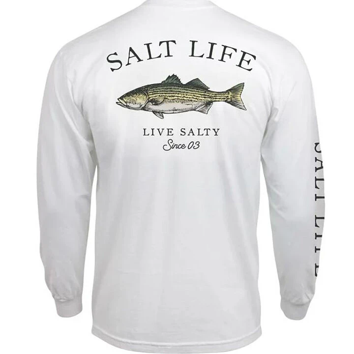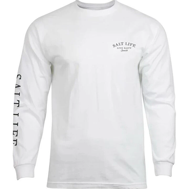 Salt Life® Men’s All Waters Long-Sleeve tee features a crew neckline and front/back/sleeve screen printed graphics. Made out of 100% Cotton 30’s preshrunk Ringspun Jersey, this Salt Life® men’s t-shirt is stylish, comfortable, and sure to keep you protected from the sun.